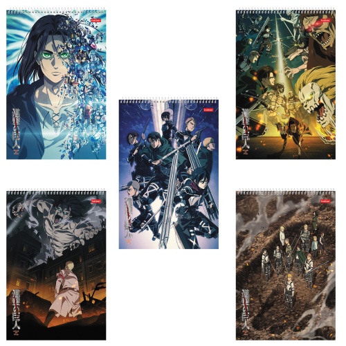 Код товара: 00-00101809Альбом д/рис. А4 30л., спираль, обложка картон, HATBER, 205х300мм, Атака Титанов (микс), 30А4Всп