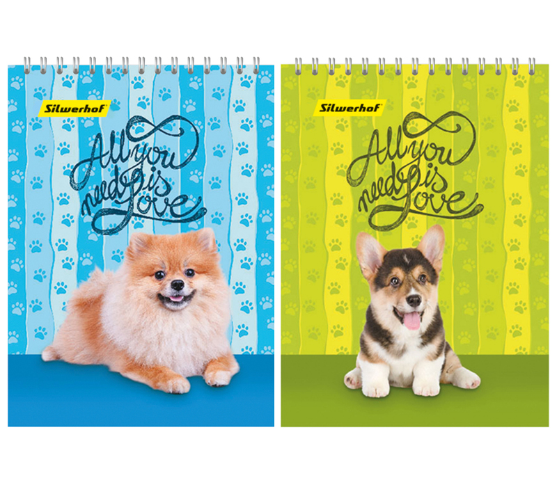 Блокнот Silwerhof 731147-26 40л. клетка А6 Щенки 2 дизайна, картон сплошное ультрафиолетовое лакированное покрытие, спираль