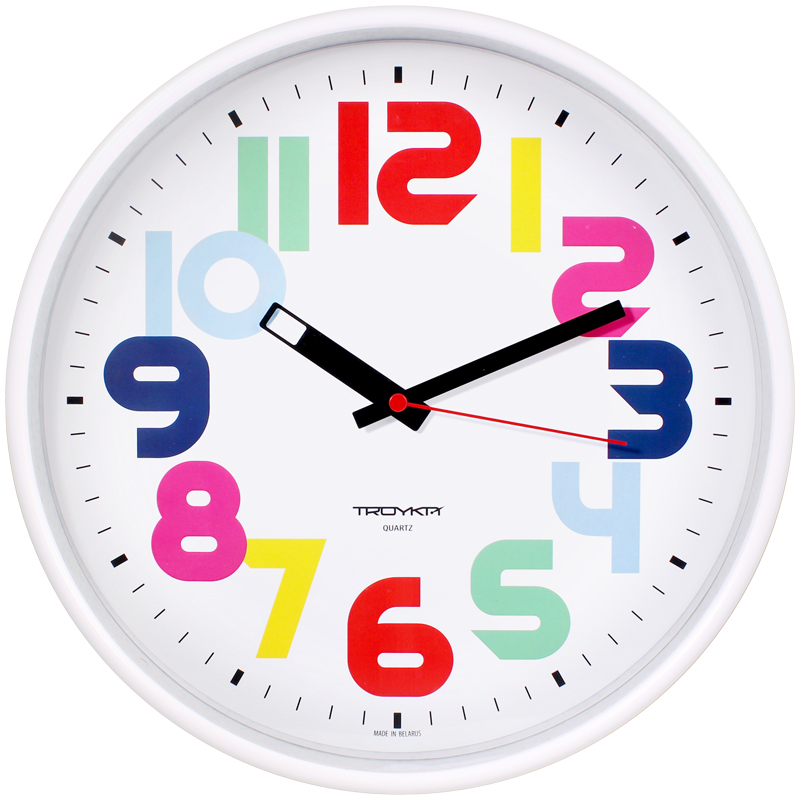 Часы настенные круглые Troyka 77761790 белая рамка