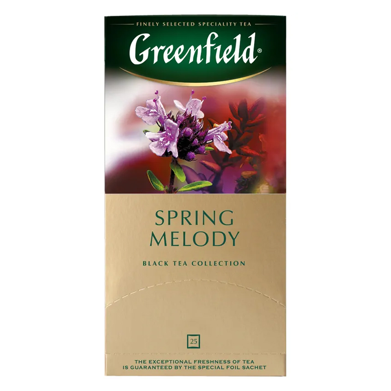 Код товара: 00-00091929Чай Greenfield (Гринфилд) 25 пакетов 2г Spring Melody, черный с ароматом мяты, чабреца