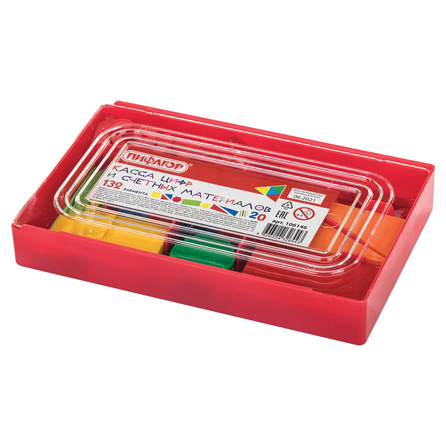 Касса счетных материалов и цифр Пифагор 106146 пластик 132 элемента