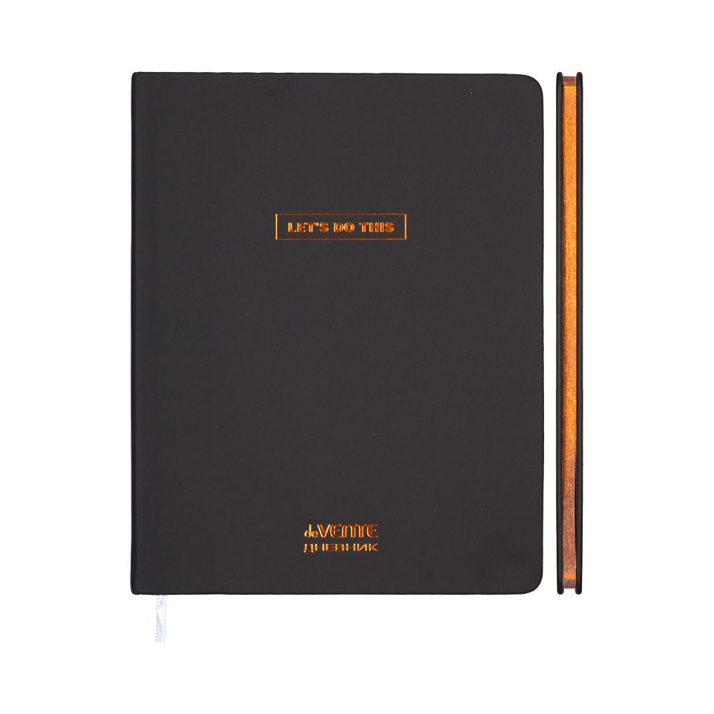 Дневник "deVENTE. Black&Metallic" универсальный блок, 48 листов, белая бумага 80 г/м² с бронзовым срезом, печать в 1 краску, твердая обложка из искусственной кожи, тиснение фольгой, 1 ляссе, черный с бронзовым