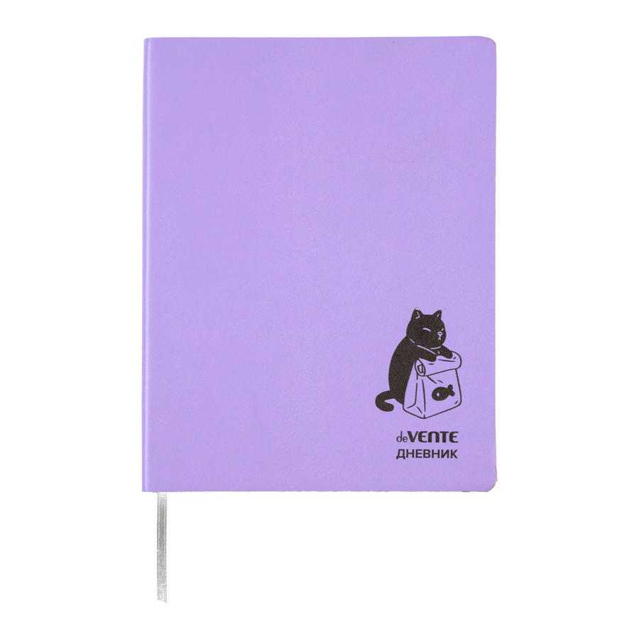 Дневник "deVENTE. Cat and Fish" универсальный блок, 48 листов, белая бумага 80 г/м², печать в 1 краску, мягкая обложка из искусственной кожи soft touch, шелкография, 1 ляссе