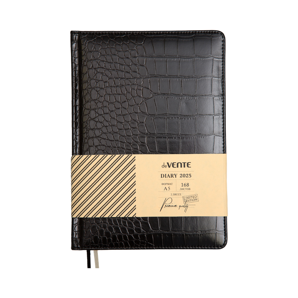 Ежедневник датированный 2025 "deVENTE. Belcanto" A5 (145 ммx205 мм) 336 стр, кремовая бумага 70 г/м², печать в 2 краски, твердая обложка из искусственной кожи с поролоном, отстрочка, перфорация, закругленные уголки, 2 ляссе, в термоусадочной пленке, черный