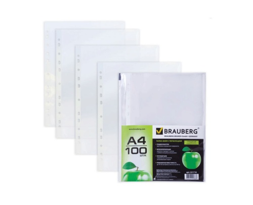 Код товара: 00-00116121Файлы с перфорацией А4 Berlingo SPm_A4060 Mirror 60мкм, (50шт) глянцевая