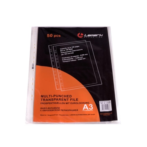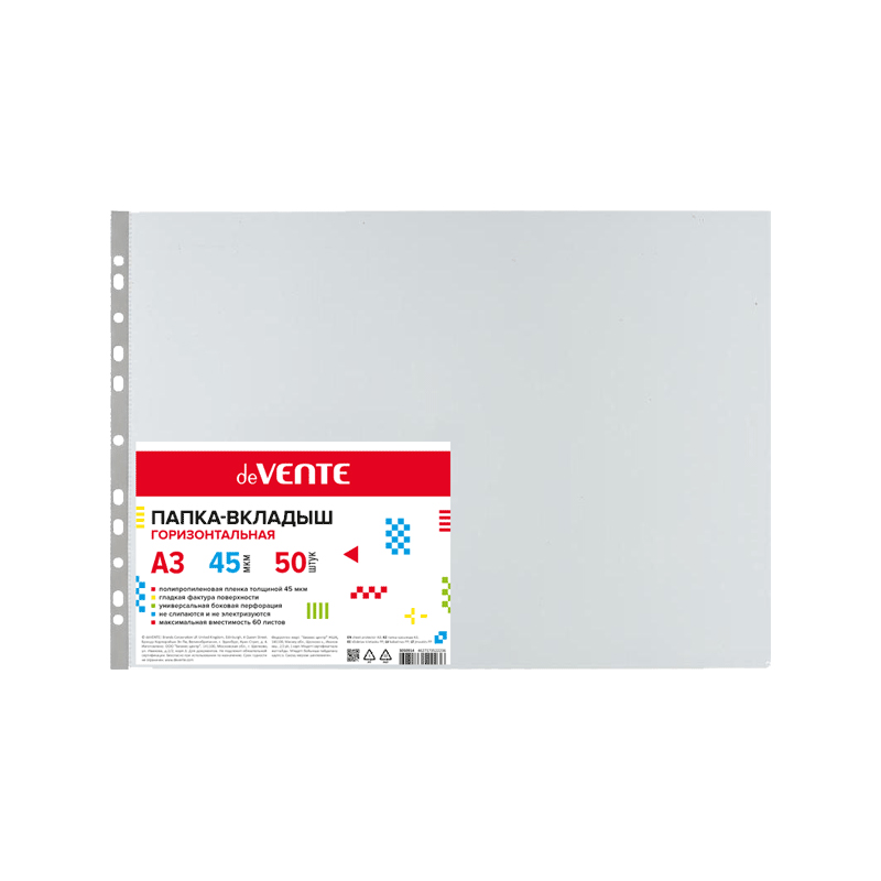 Файлы с перфорацией А3 deVENTE 3050914 (50шт), 45 мкм горизонтальные, глянцевые