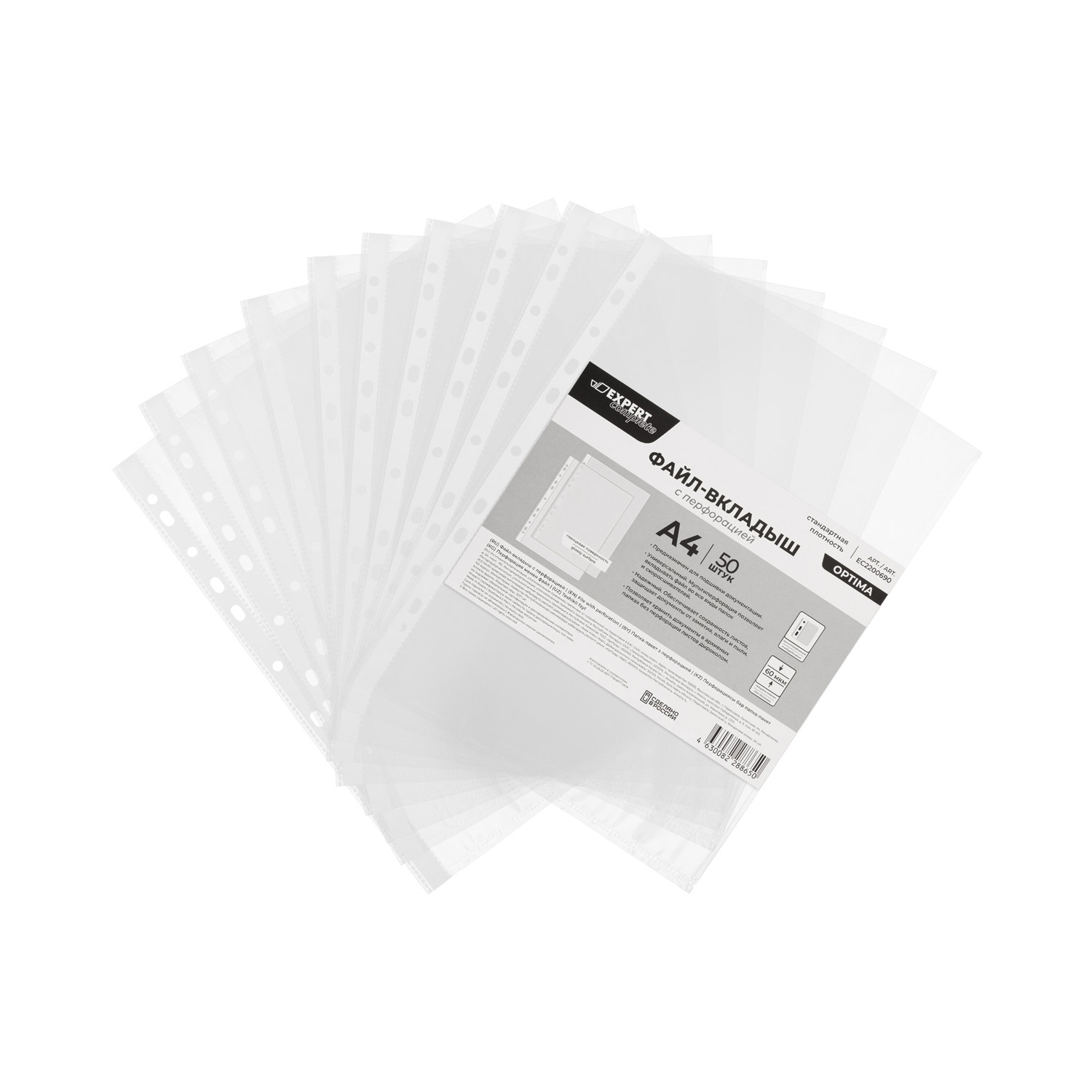 Код товара: 00-00113716Файлы с перфорацией А4 Expert Complete EC2200690 OPTIMA 60мкм, (50шт) глянцевая