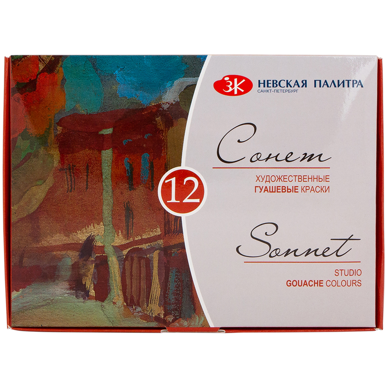 Художественные гуашевые краски «Сонет» предназначены для создания учебных работ, макетов, декора и иллюстраций. Краски изготовлены по новой технологии с применением пигментных паст и синтетического связующего. Обладают высокой укрывистостью. После высыхания приобретают бархатистую матовую поверхность. Палитра гуашевых красок в наборе «Сонет» состоит из 12 основных цветов, необходимых начинающему художнику для работы.