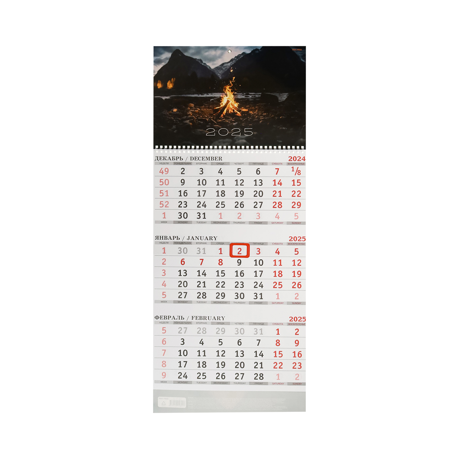 Календарь настенный 2025г. перекидной на спирали Проф-Пресс КК-5601 Горы и костер