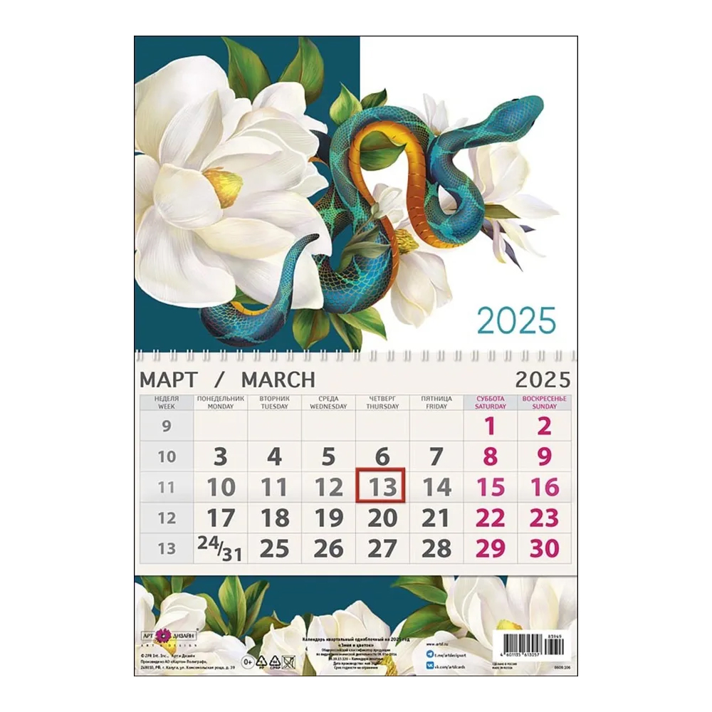 Календарь настенный 2025г Змея и цветок 210*295 мм 0609.106