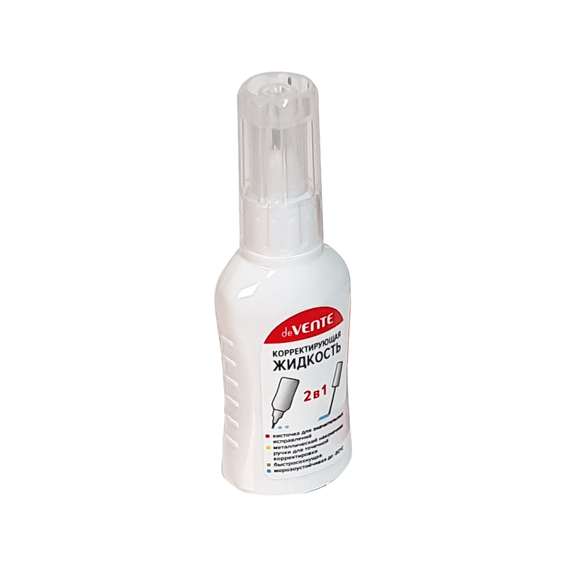 Корректирующая жидкость 2 в 1 "deVENTE" 10 мл, быстросохнущая, в бутылочке с кисточкой и металлическим наконечником, в картонном дисплее с пластиковым поддоном
