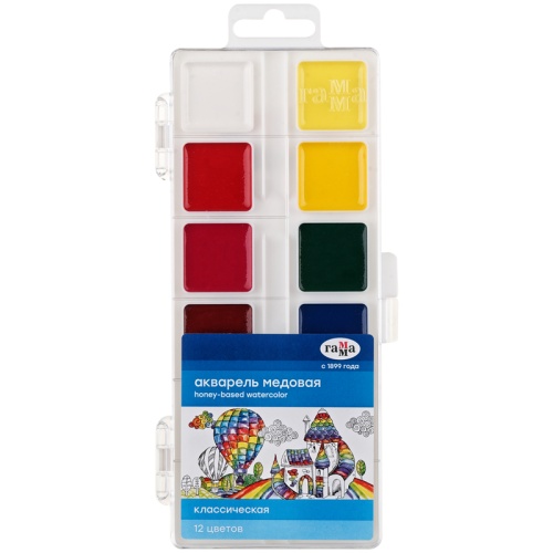 Код товара: 00-00112387Краски акварель медовая 12 цв. Гамма Классическая 1009194, без кисти