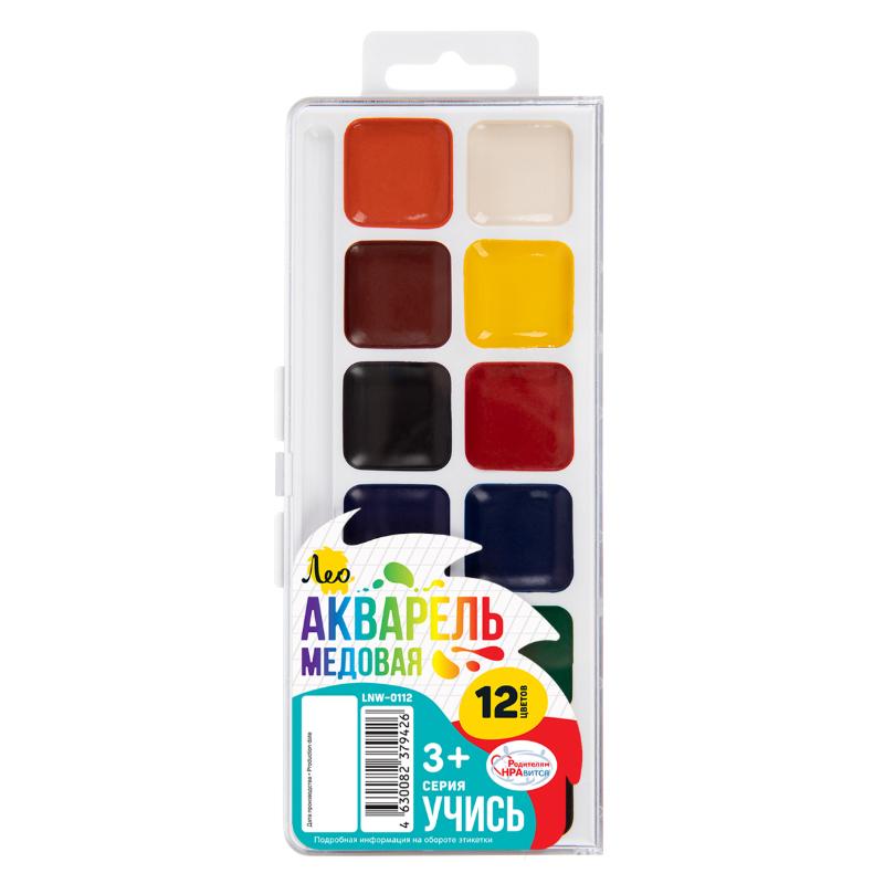 Код товара: 00-00100664Краски акварель медовая 12 цв. Лео Ярко LBPW-0112, без кисти (пастельные цвета)
