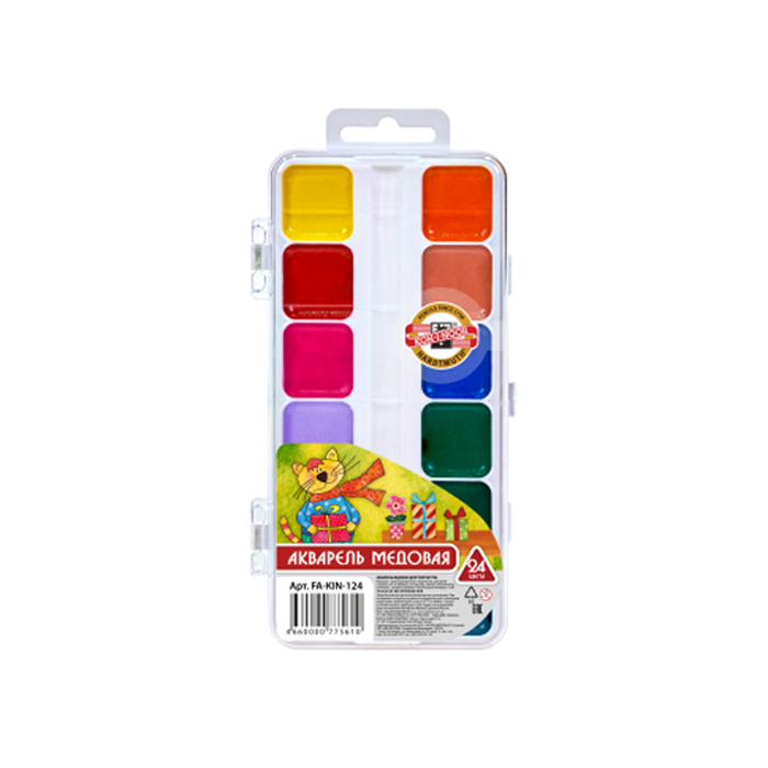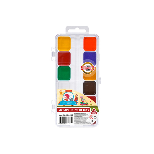 Код товара: 00-00107599Краски акварель медовая 12 цв. Koh-I-Noor FA-KIN-112, пласт.кор., б/к