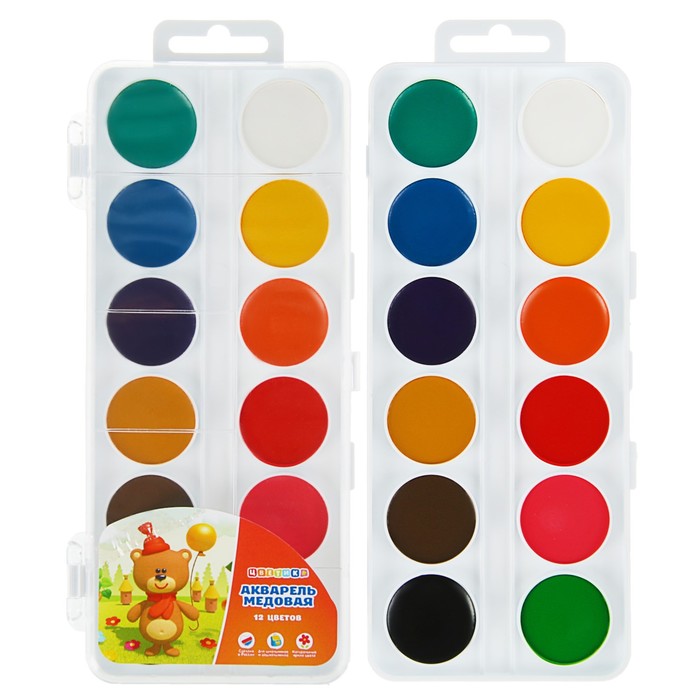 Код товара: 00-00096331Краски акварель медовая 12 цв. ЗХК Невская Палитра Цветик 2742189, без кисти