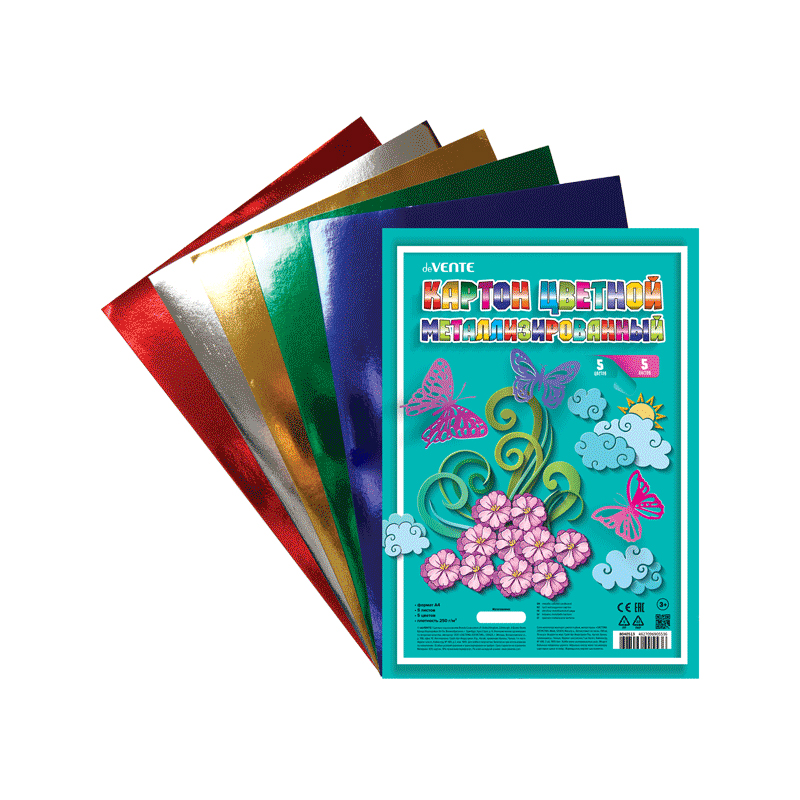 Код товара: 00-00113295Набор картона цветного А4 5л 5цв deVENTE 8040513 металлизированный