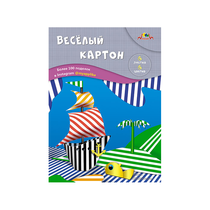 Код товара: 52014Набор картона цветного А4 6л 6цв Апплика С0151-01 Веселый, полоски, двухсторонний