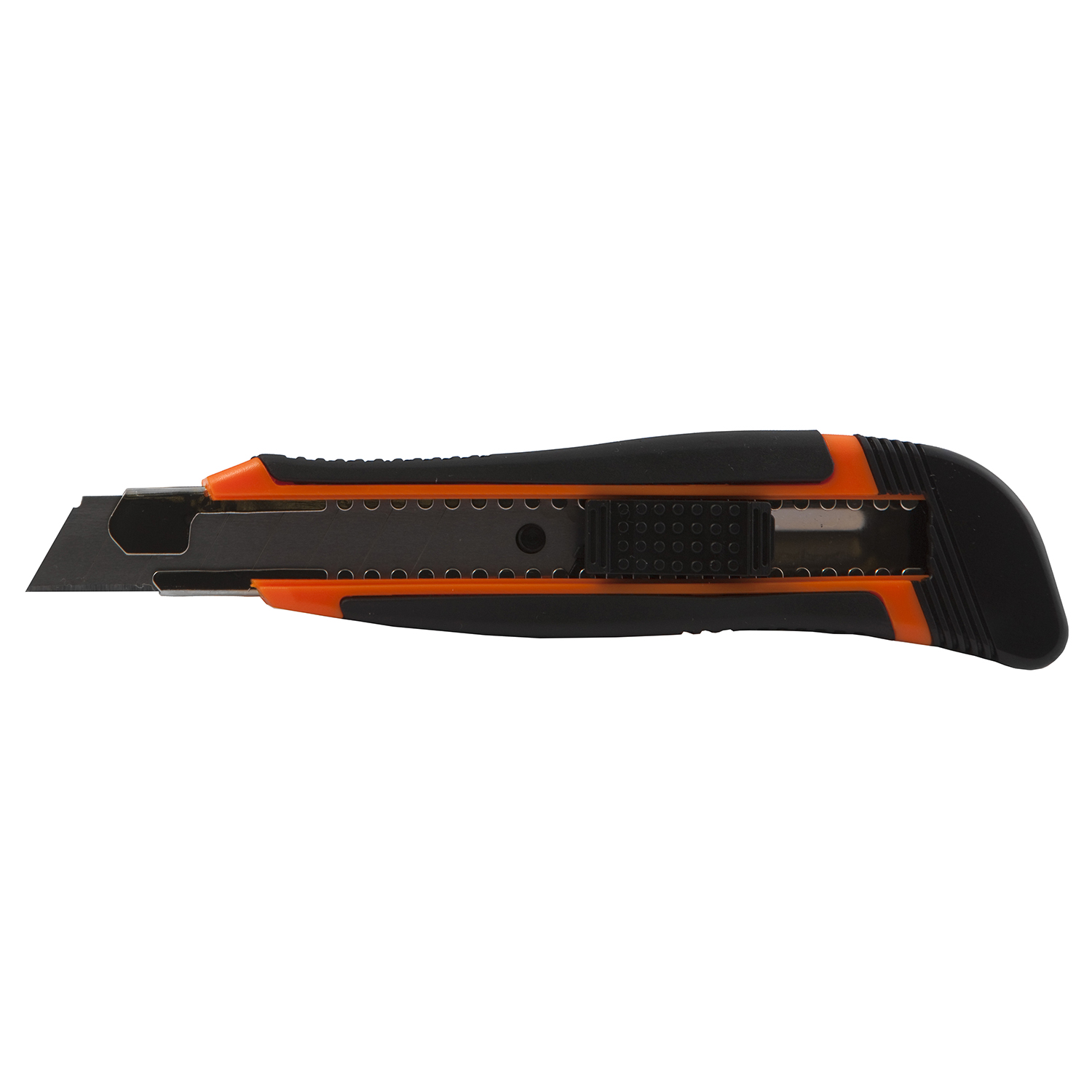 Нож многоцелевой Lamark c металлическими направляющими, ширина лезвия 18 мм. Корпус снабжен контейнером с 2-мя запасными лезвиями. Автоматическая блокировка обеспечит безопасность при работе. Пластиковый эргономичный корпус дополнен вставками против скольжения руки и для снятия напряжения. Лезвие из карбоновой стали снабжено насечками для безопасного и ровного обновления использованного кончика. Поставляется в блистерной упаковке с европодвесом. Имеет широкое применение: склад, логистика, строительство, в быту, в офисе.