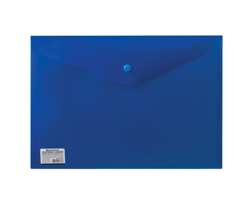 Папка-конверт на кнопке А4 Brauberg 224813 синяя