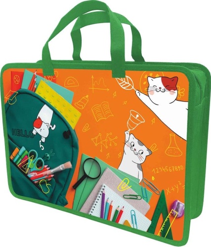 Код товара: 00-00101992Папка для тетрадей на молнии А4 Lamark DC0035-30 Кот-звонок, с ручками