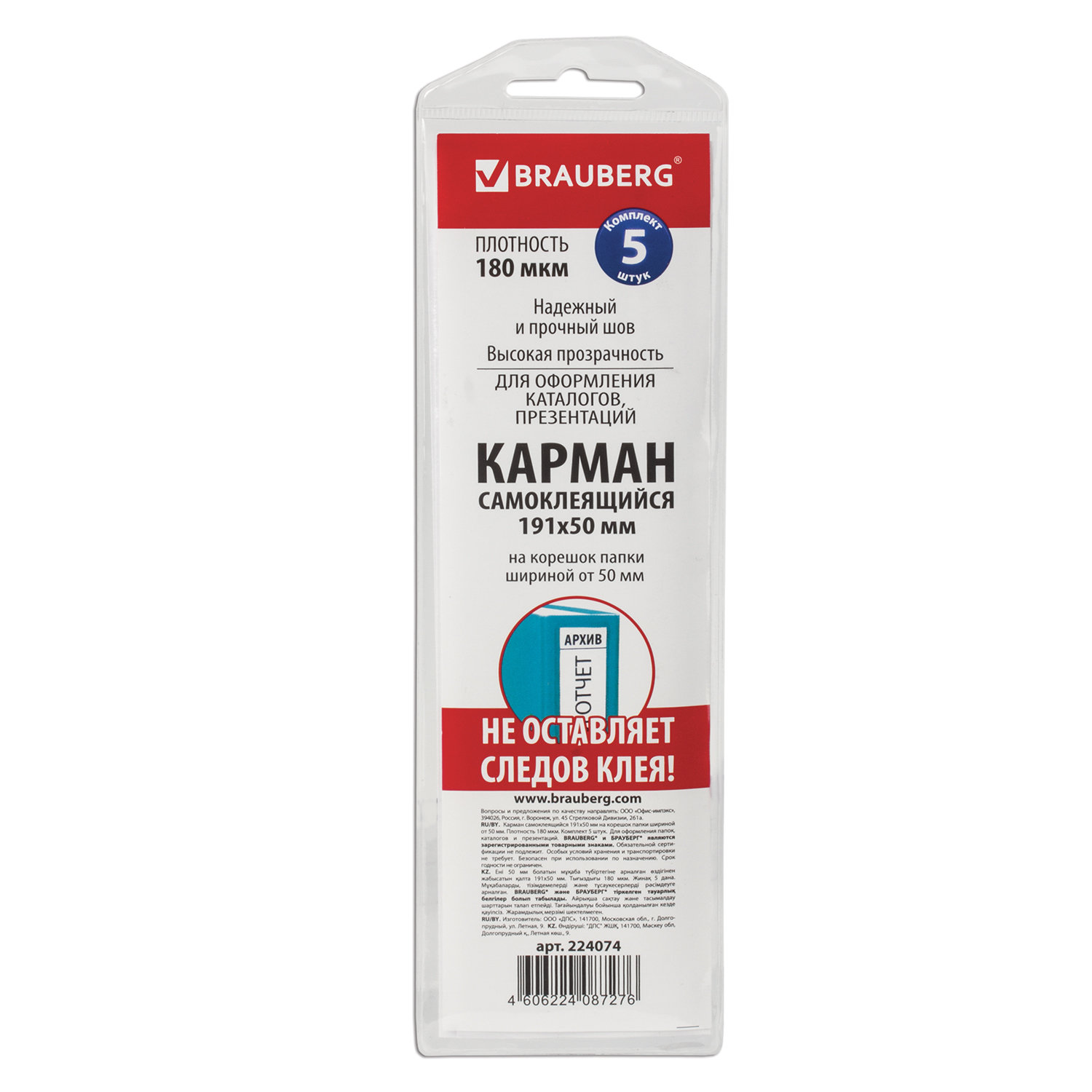 Карман информационный самоклеящийся для визитных карточек 65*98мм Brauberg 224076 (5шт.комплект)