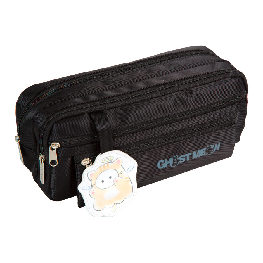 Пенал "deVENTE. Ghost Meow" 22x9,5x7 см, плотный износостойкий полиэстер с водоотталкивающей пропиткой, 2 отделения на молнии, овальный для 60 предметов, 2 внешних кармана на молнии, декоративный элемент на липучке из искусственной кожи, черный