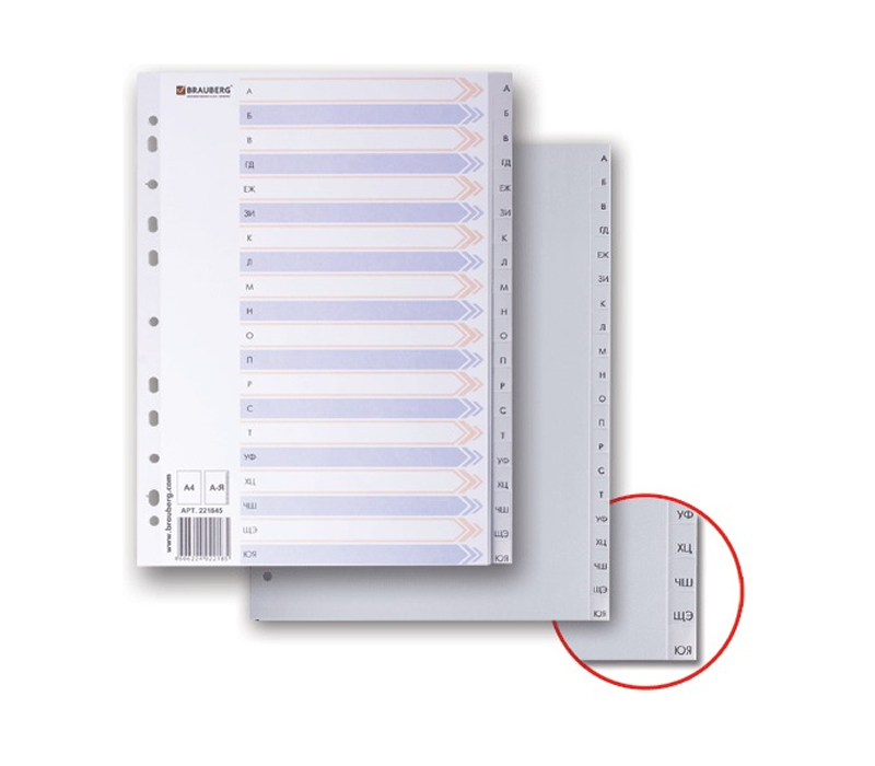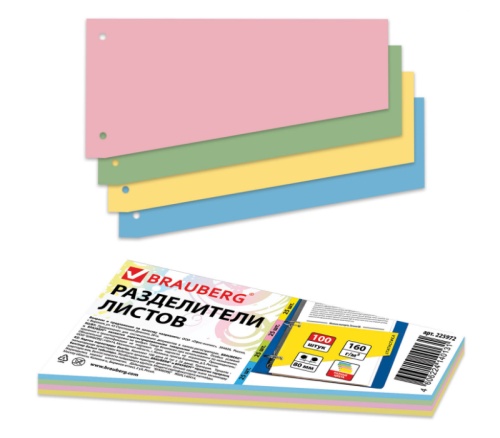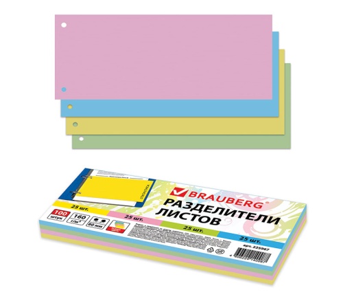 Код товара: 00-00072071Разделитель листов цветной 4цв.*25шт картон 24*10,5см Brauberg 225967