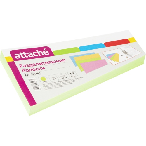 Код товара: 00-00084488Разделитель листов цветной 1цв.*100шт картон 23*12см Attache 216165 зеленый