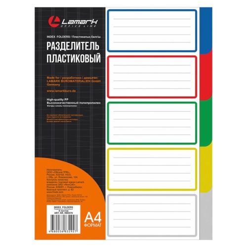 Код товара: 40238Разделитель листов цветной 5цв. пластик А4 deVENTE 3051313 Marandi