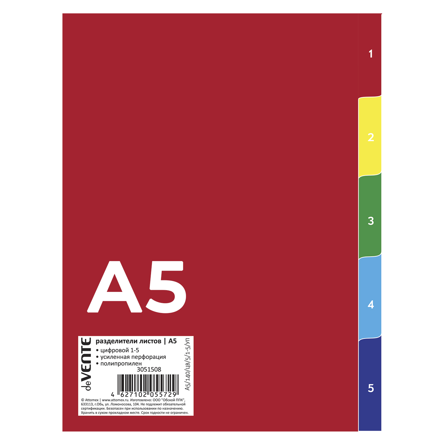 Разделитель листов "deVENTE" пластиковый A5 цифровой цифры 1-5 5 цветов