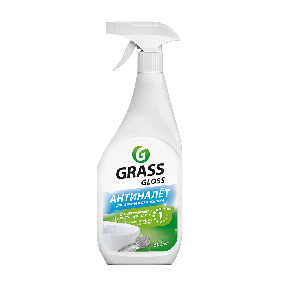 Бытовая химия Grass (ГраСС).Чистящее средство для ванной комнаты Gloss (Глосс). Средства для уборки линейки Gloss подходят для ванных комнат,чистки ванны, душевых кабин, сантехники, фаянсовых изделий и кафеля от известкового налета, потеков ржавчины, мыльных разводов и солевых отложений. Чистящее средство grass Gloss эффективно удаляет сложные и застарелые загрязнения. Безопасное средство для акриловых ванн, работает как отбеливатель. Придает поверхности чистоту и блеск, сохраняя эффект на несколько дней. На поверхностях, чувствительных к кислоте, держать не более 30 секунд.