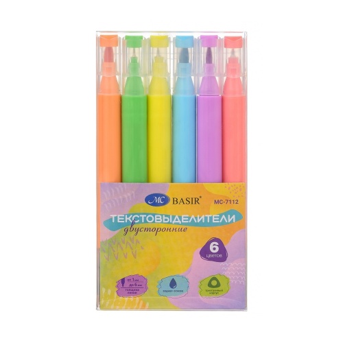 Текстмаркер 6шт.уп. Basir MC-7112-6 двусторонние (наконечник кистевидный + линер)