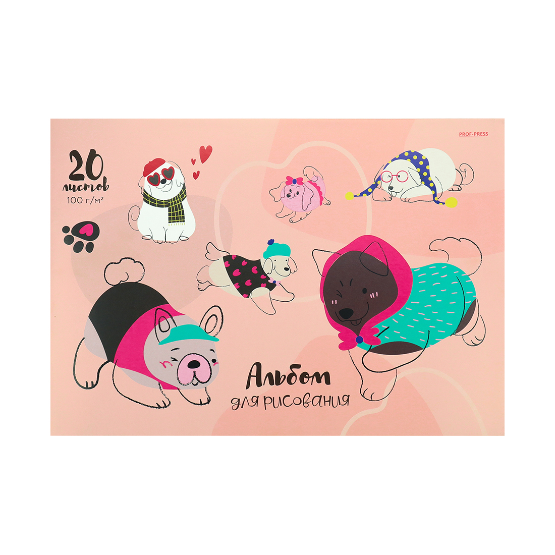 Альбом для рисования А4/20л на скрепке 20-5108 Очаровательные пёсики