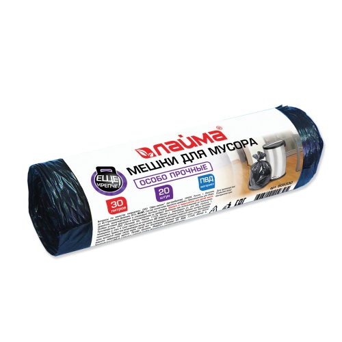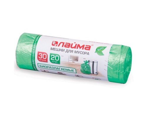 Код товара: 00-00110976Мешки для мусора 30л 20шт БИОРАЗЛАГАЕМЫЕ, LAIMA, ПНД, прочные, 50х60см, 10 мкм 601400