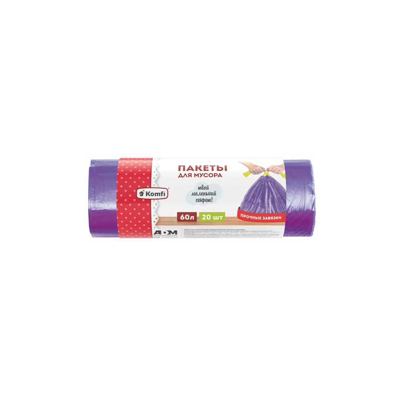 Код товара: 00-00103701Мешки для мусора 60л 20шт Komfi, MUSFIO1, с завязками, фиолетовые