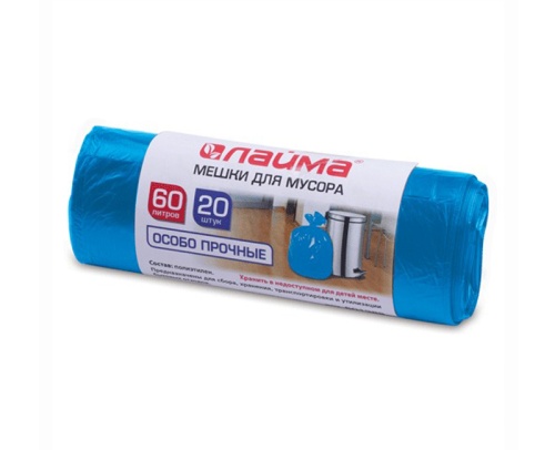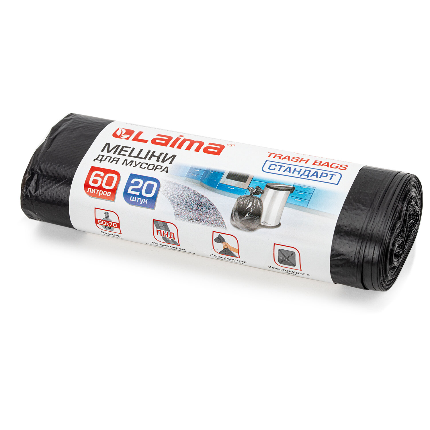 Код товара: 00-00094486Мешки для мусора 60л 20шт.упак 60см*70см LAIMA Ultra 18мкм, ПНД 607692 с завязками