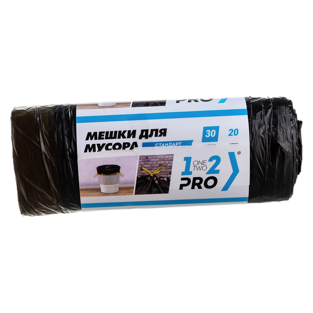 Код товара: 00-00072260Мешки для мусора 30л 20шт 1-2-Pro ММЗН03014-20 50*55 14мкм ПНД, с завязками, 157779