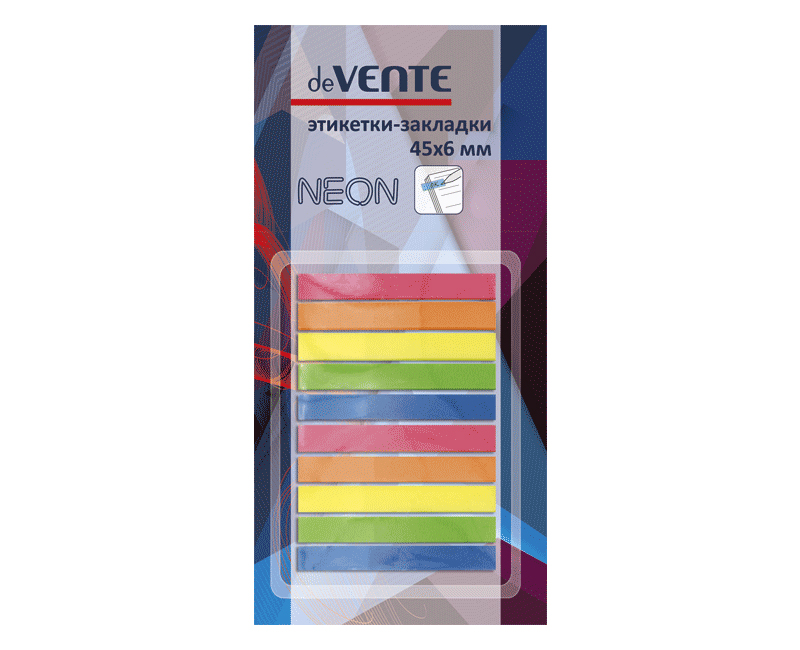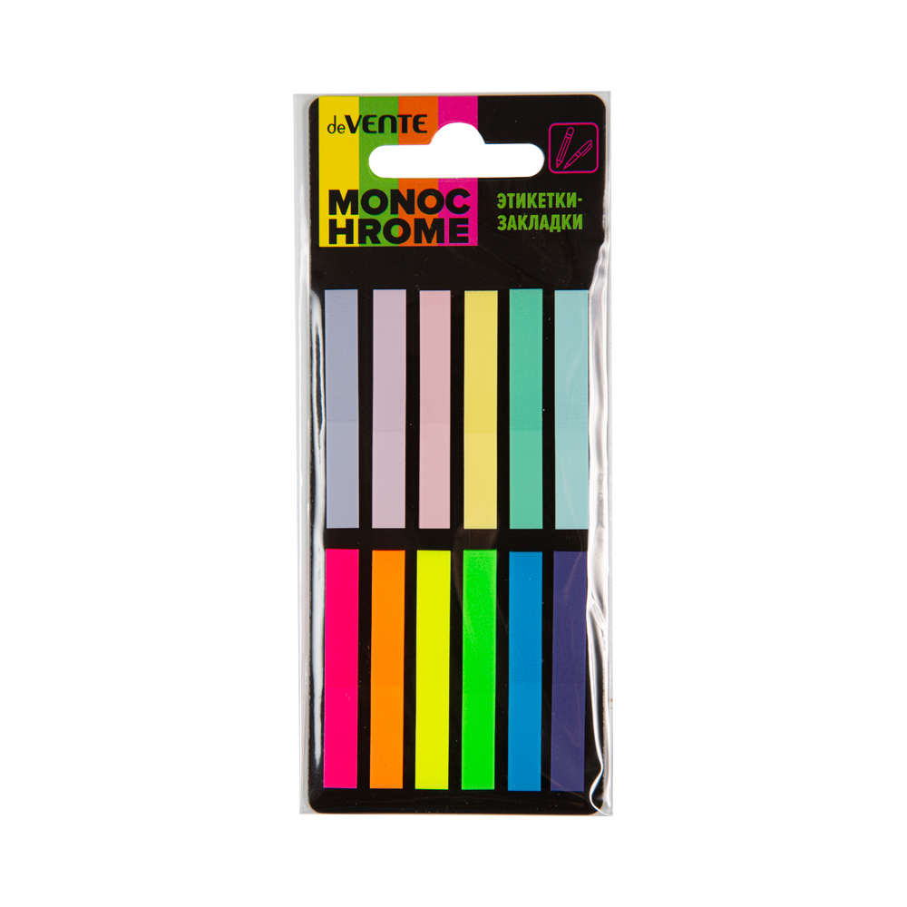 Код товара: 00-00112887Закладки самоклеящиеся 45*6мм 12цв*20л deVENTE 2011465 неон+пастель пластик