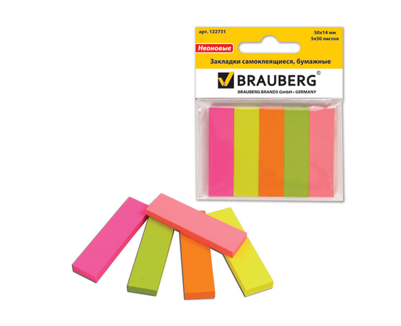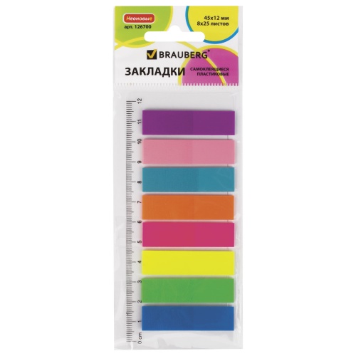 Код товара: 00-00001010Закладки самоклеящиеся 45*12мм 5цв*25л Brauberg 111356 пластик неон