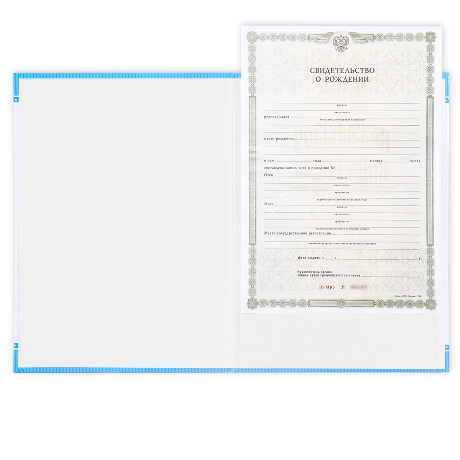 Папка под свидетельство о рождении формата А4 имеет удобный файл внутри, который защитит первый в жизни документ малыша от повреждений.