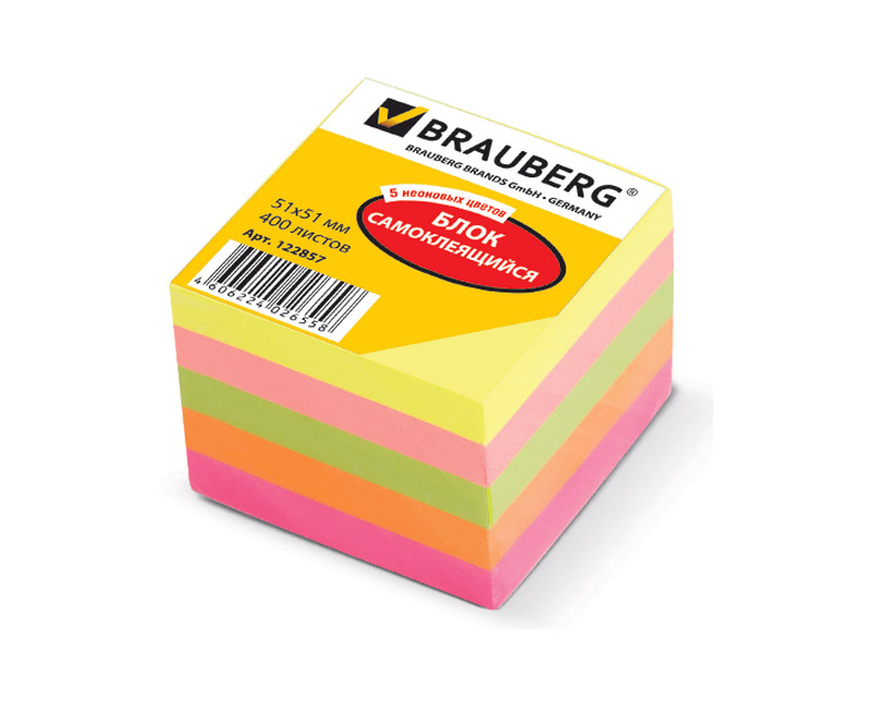 Код товара: 00-00068173Блок самоклеящийся (стикер) 51*51мм 250л Lamark SN0500, 5цветов, неон