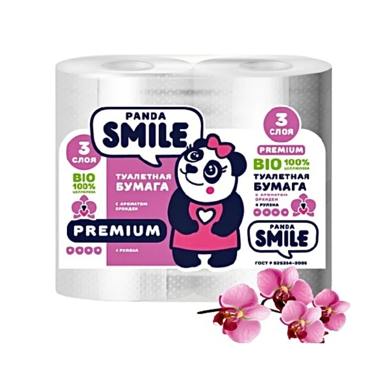 Бумага туалетная 3-х слойная 4шт Панда Орхидея