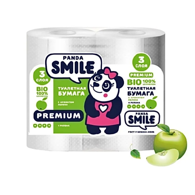 Бумага туалетная 3-х слойная 4шт Панда Яблоко