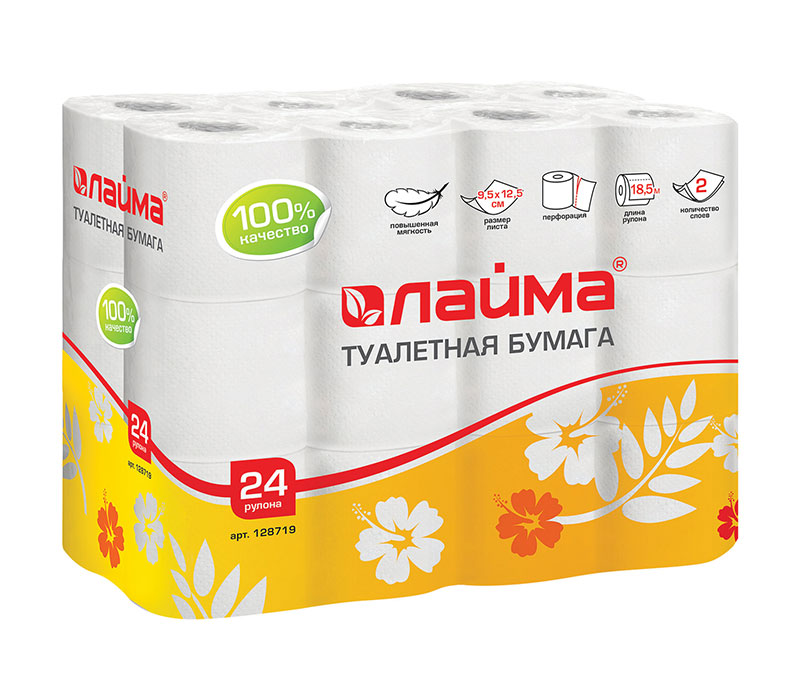 Бумага туалетная 2-х слойная 24шт LAIMA (24*18,5м), 128719