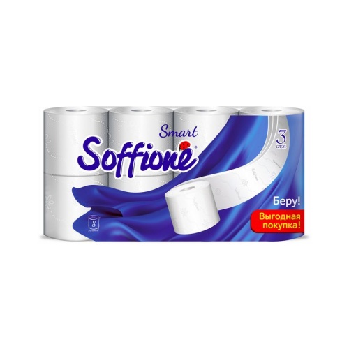 Бумага туалетная 3-х слойная 8шт Soffione Smart