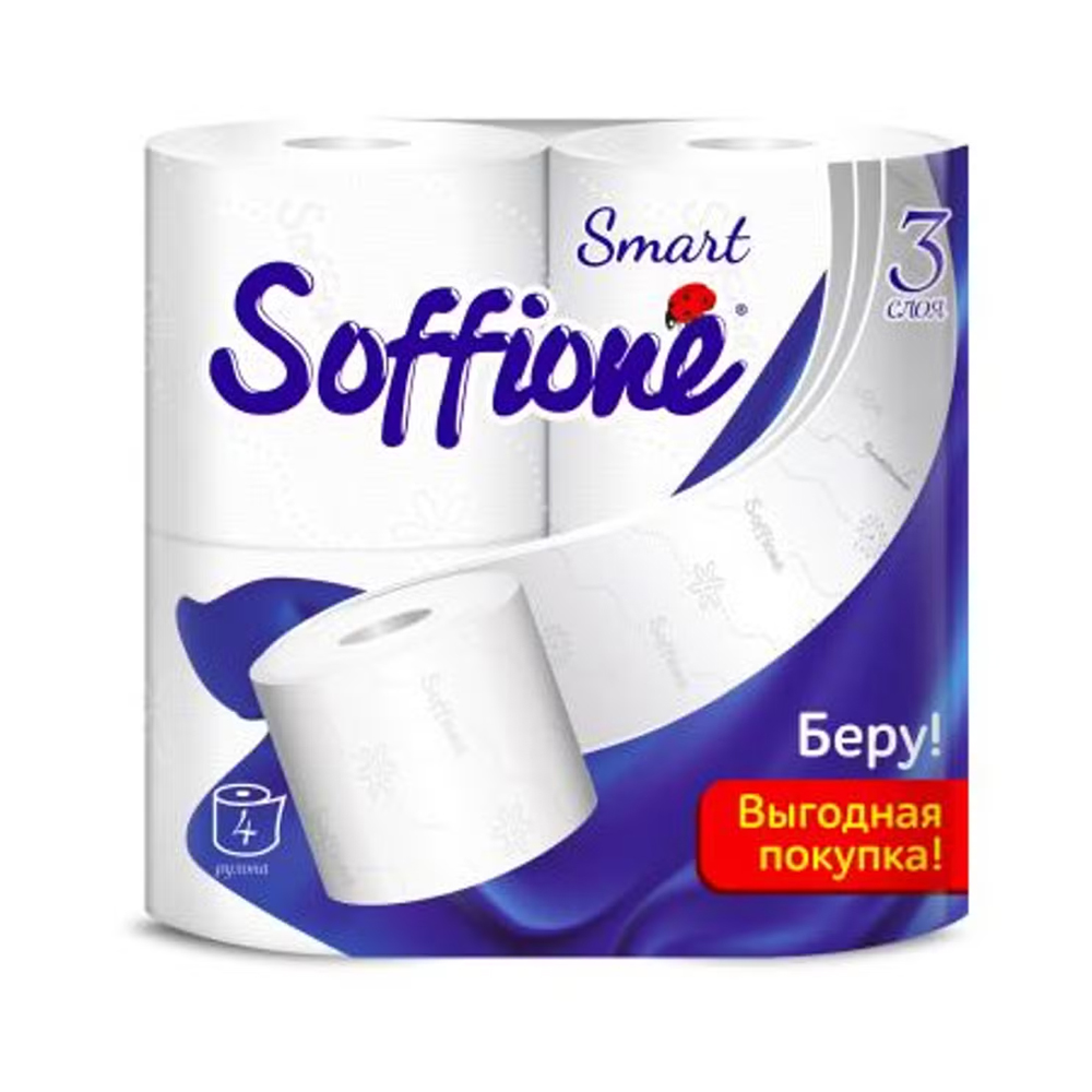 Бумага туалетная 3-х слойная 4шт Soffione Smart