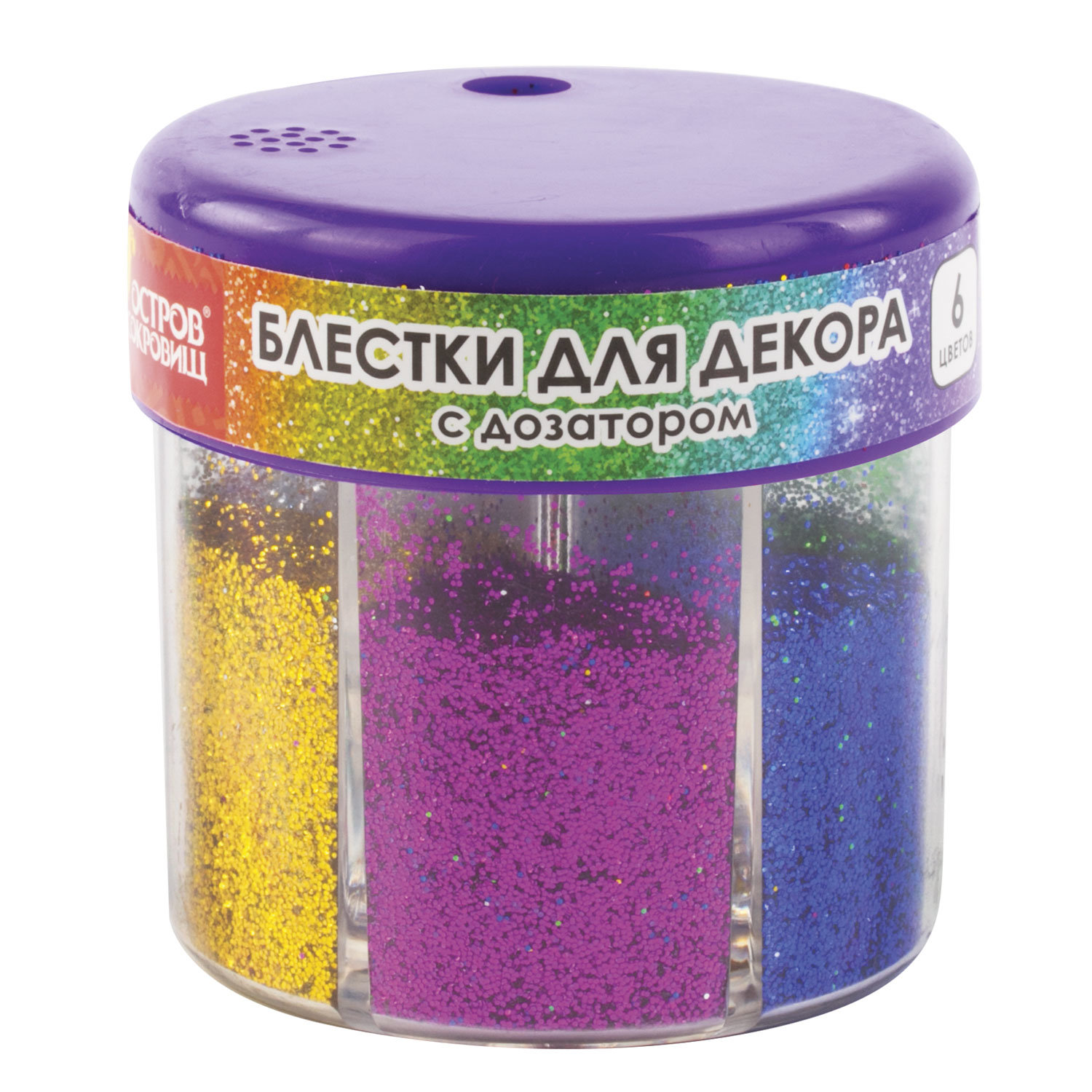 Код товара: 00-00104066Декоративные блестки Остров Сокровищ в диспенсере с дозатором 6 цветов