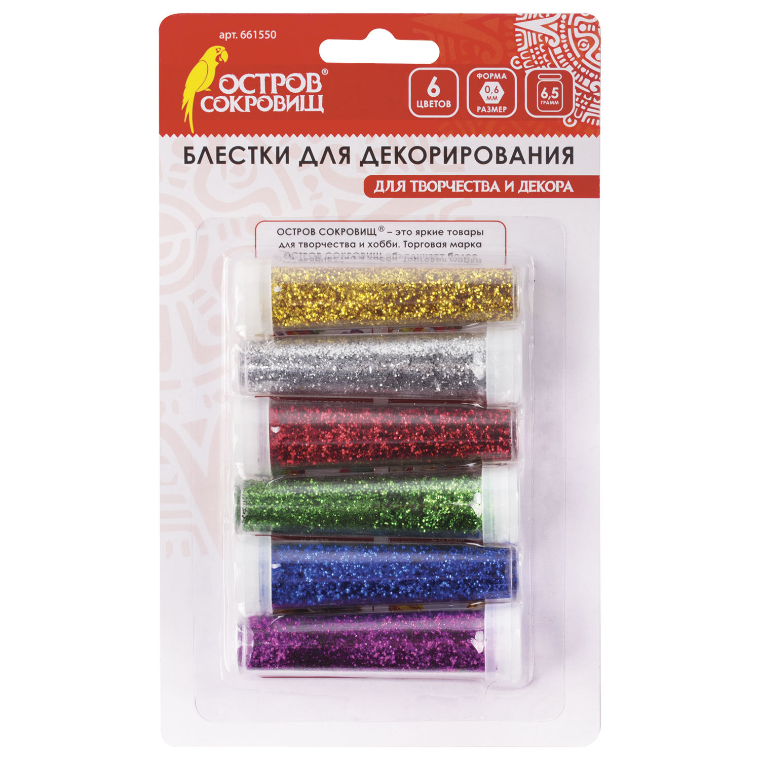 Код товара: 00-00073944Декоративные блестки Остров Сокровищ набор 6 цветов по 6,5г 661550