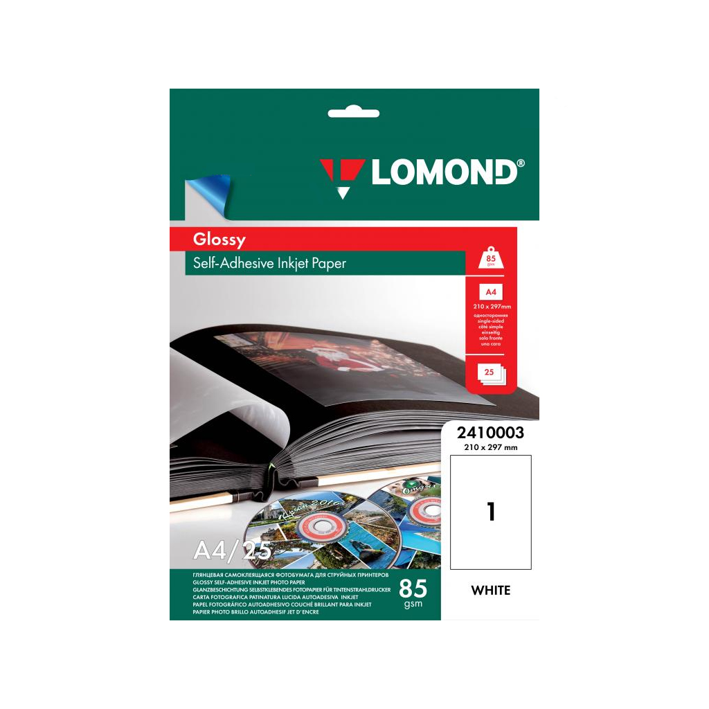 Этикетка самоклеящаяся Lomond А4 неделенная 25шт.уп. 2410003 глянцевая