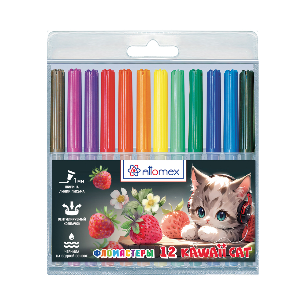Фломастеры 12цв Attomex 5081536 Kawaii Cat